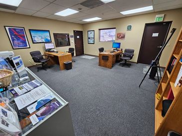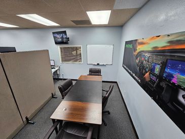Our main office has a seperate area in the back for studygroups or checkride exams. The main office also has additonal workstations.