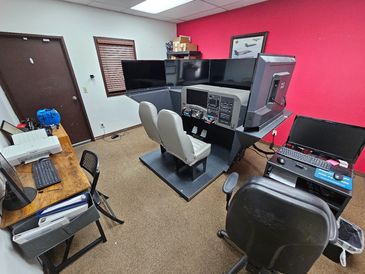 Our sim is housed in it's own office with a workstation for study and printing charts and is excellent for accelerated private pilot training and instrument training.